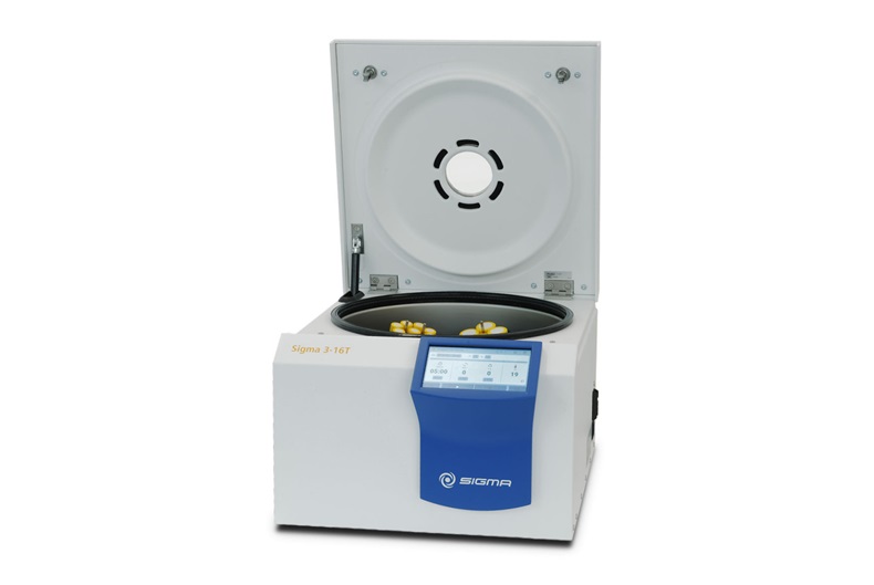 La centrífuga de sobremesa Sigma 3-16T ahorra espacio y tiene una impresionante capacidad de hasta 4 × 400 ml. Su amplia gama de rotores y accesorios le permite adaptarse a una gran variedad de recipientes de muestras, lo que proporciona un alto grado de flexibilidad para muchas aplicaciones de laboratorio, desde tareas rutinarias hasta pasos de proceso más exigentes.
