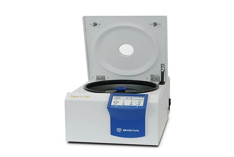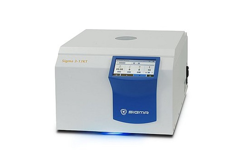 La centrífuga de sobremesa Sigma 3-17KT combina un diseño compacto con una refrigeración potente y de control preciso. Ofrece una refrigeración rápida y ajustable con precisión en un rango de temperatura de -20 °C a +40 °C. La función de refrigeración rápida «Rapid Temp», que se puede seleccionar directamente mediante un botón, permite a los usuarios preenfriar la cámara de la centrífuga y los accesorios a una temperatura definida.